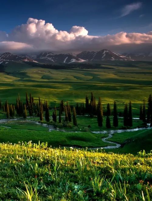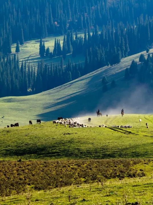 這種由草原、雪山、松林結合在一起的美,就是那拉提草原的過人之處。
