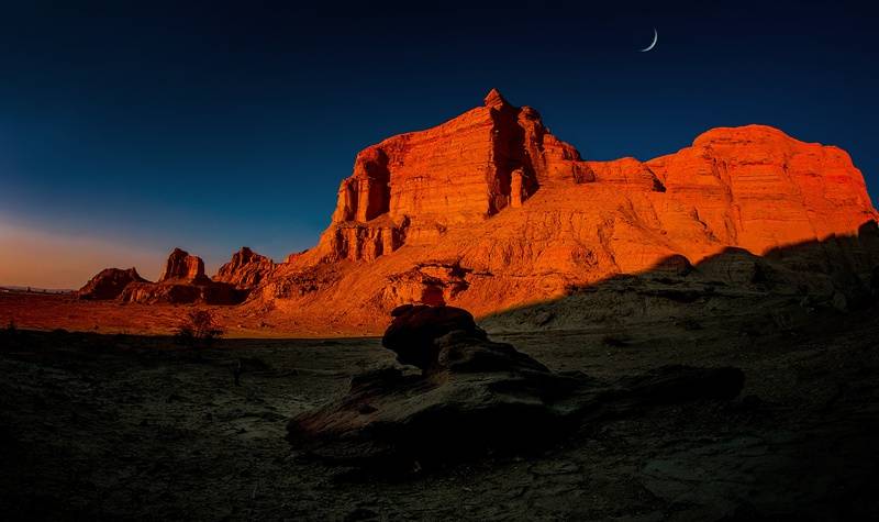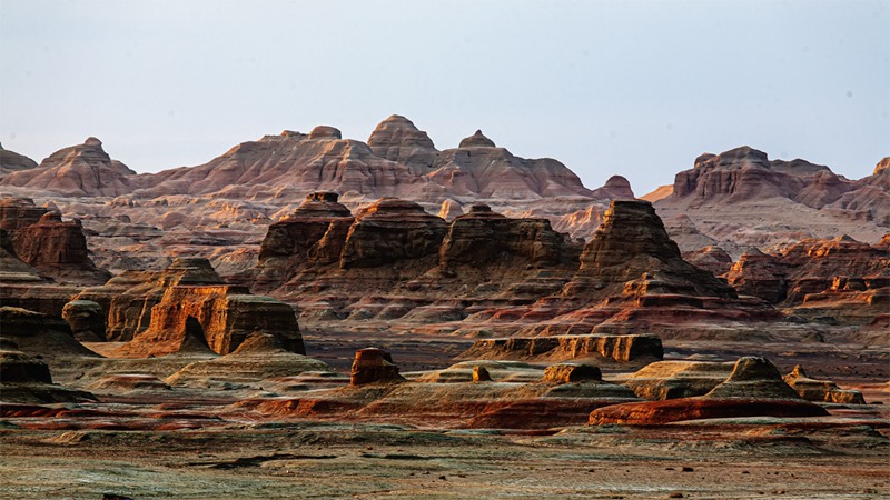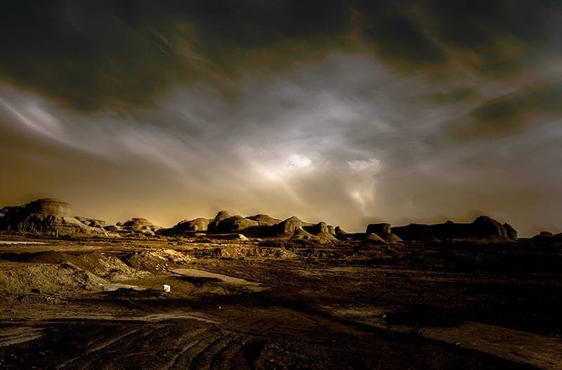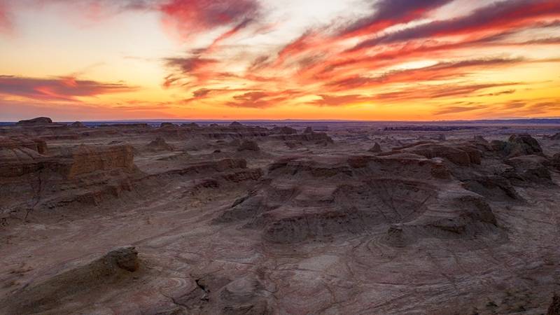 新疆烏爾禾風(fēng)城,位于準噶爾盆地西北邊緣的佳木河下游烏爾禾礦區(qū),西南距克拉瑪依市100公里。該處有獨特的風(fēng)蝕地貌,形狀怪異,且四季狂風(fēng)不斷,被當(dāng)?shù)厝朔Q為“魔鬼城”。其實,這里是典型的雅丹地貌區(qū)域?!把诺ぁ笔蔷S吾爾語“陡壁的小丘”之意,是在干旱、大風(fēng)環(huán)境下形成的一種風(fēng)蝕地貌類型。