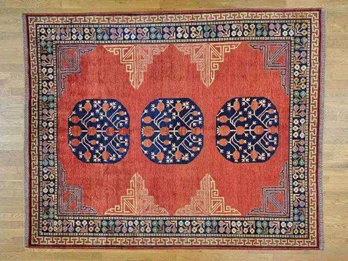 和田地毯具有鮮明的民族特點和濃厚的地方色彩,被稱為獨具一格的“東方式”地毯。其特點是:多層邊框,幾何圖形內(nèi)填人豐富而多變的紋飾,結(jié)構(gòu)嚴(yán)整而富有韻律,形式多樣而富有生活氣息。其品種有鋪毯、掛毯、座墊毯、拜墊毯、褥毯等。和田地毯圖案別致,獨具風(fēng)格,色調(diào)高雅,在圖案結(jié)構(gòu)上充分體現(xiàn)了東方民族的藝術(shù)特色,尤其是維吾爾族的藝術(shù)特色。多以植物花、果、枝葉及饒有風(fēng)趣的各類動物為紋樣的基本造型、加以擴(kuò)張變型,并輔以有變化的幾何形紋理而構(gòu)成。圖案設(shè)計題材廣泛,內(nèi)容豐富,按圖案內(nèi)容和形式可分為石榴花、蠟花式、波浪式、波斯式、散點排列式、洋花式、五枝花式和博古式八大類,此外,還有人物、花鳥和風(fēng)景掛毯,各具特色。